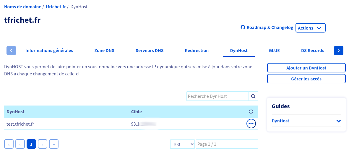 - Depuis l'extérieur, le service est toujours accessible, même après un changement d'IP.